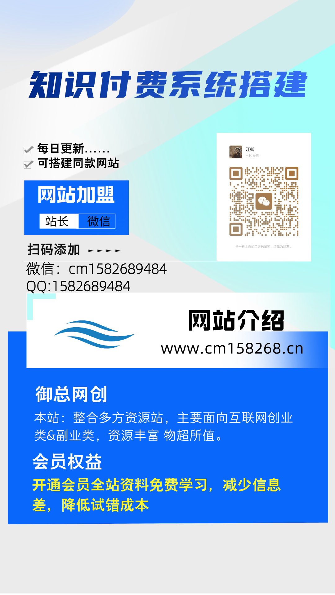 加盟御总网创,加盟搭建同款知识付费资源网站,实现长期稳定被动收入~